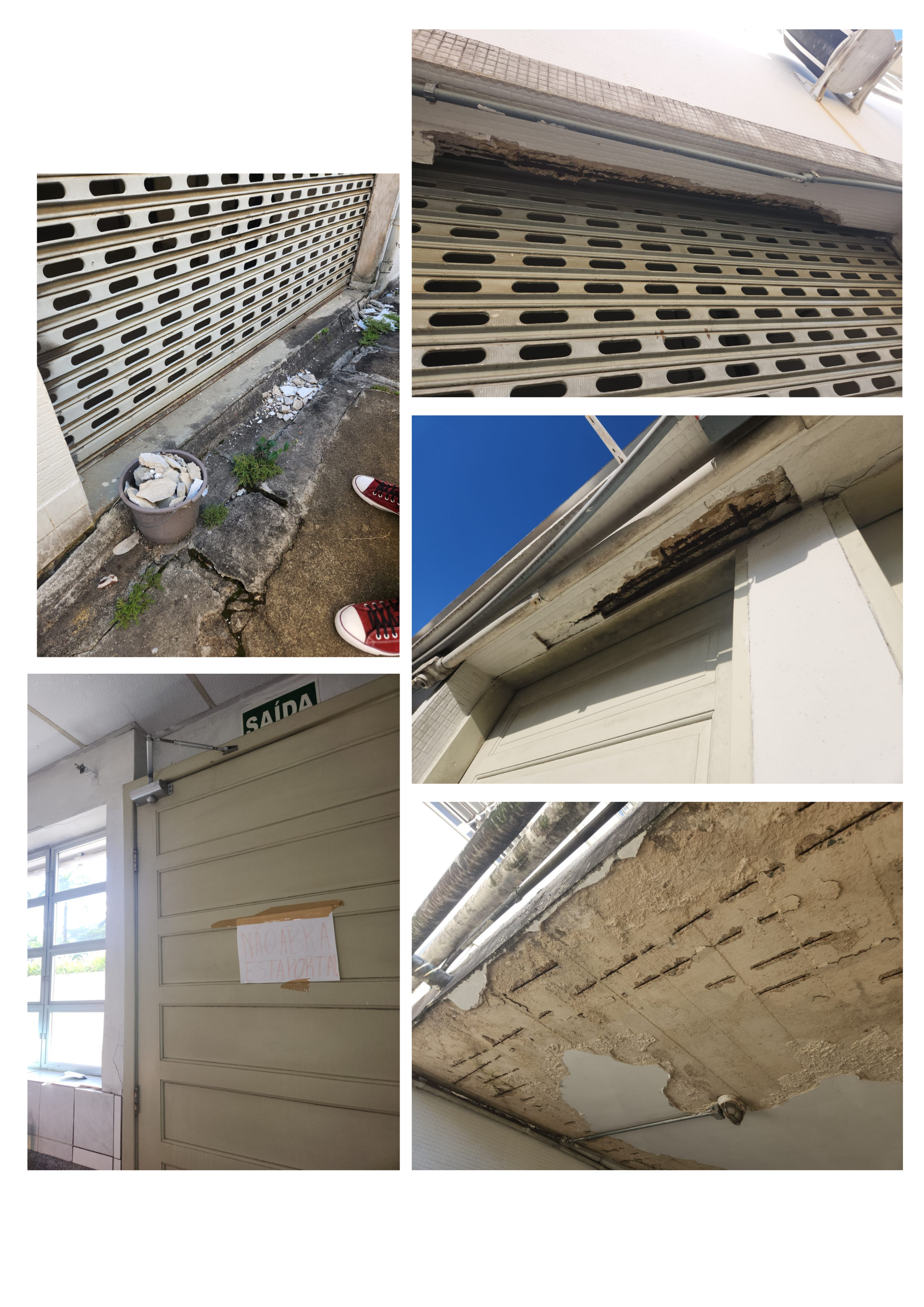 Durante a permanência na agência, os diretores também aproveitaram para verificar in-loco a estrutura física, a partir das inúmeras denúncias de servidores que chegaram ao Sindicato. Observaram com assombro que, em vários setores, existem problemas nas partes estruturais (vigas e pilares) com dutos expostos, levantamento do solo, portas travadas e inutilizadas por compressão e até mesmo lajes já sem alvenaria ou massa, com ferraria aparente. Os trabalhadores estão aflitos com as condições do prédio, relatando que toda a parte do arquivo físico da agência fica no primeiro andar e temem que a sobrecarga de material esteja causando os problemas estruturais verificados no térreo.