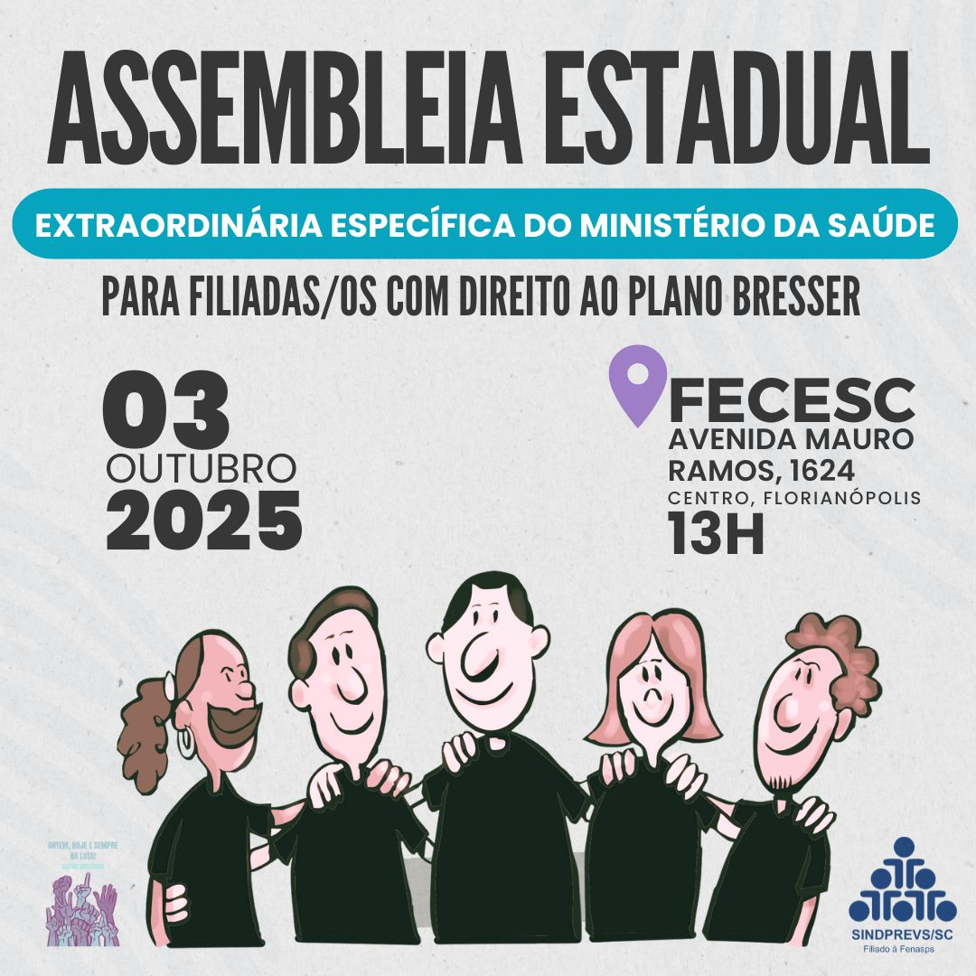 O Sindprevs/SC realizou no dia 3 de outubro de 2025 Assembleia Extraordinária Específica que teve como pauta dar informes sobre o andamento e...